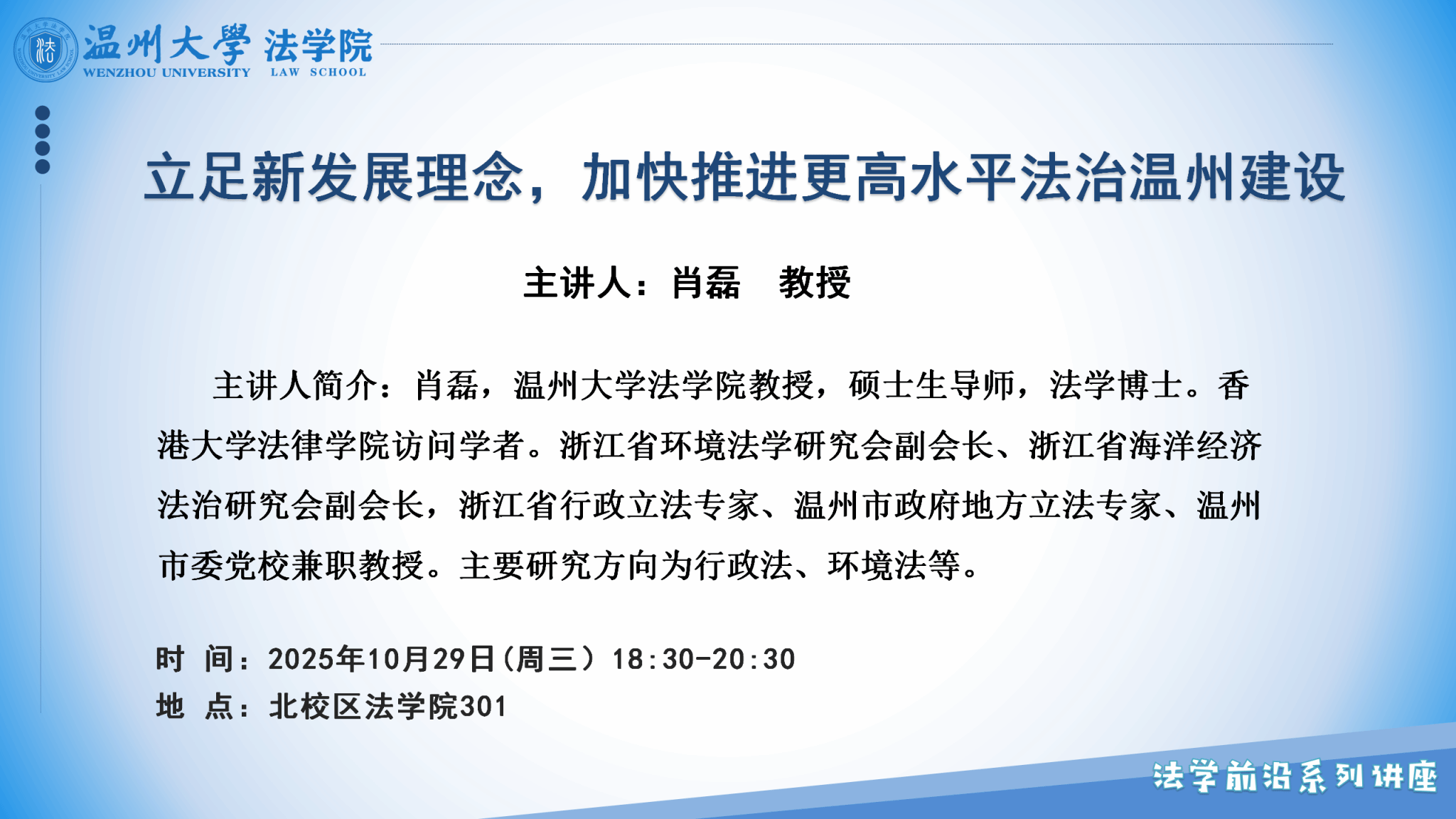 讲座预告|法学前沿讲座第三期第5讲:立足新发展理念,加快推进更高水平法治温州建设