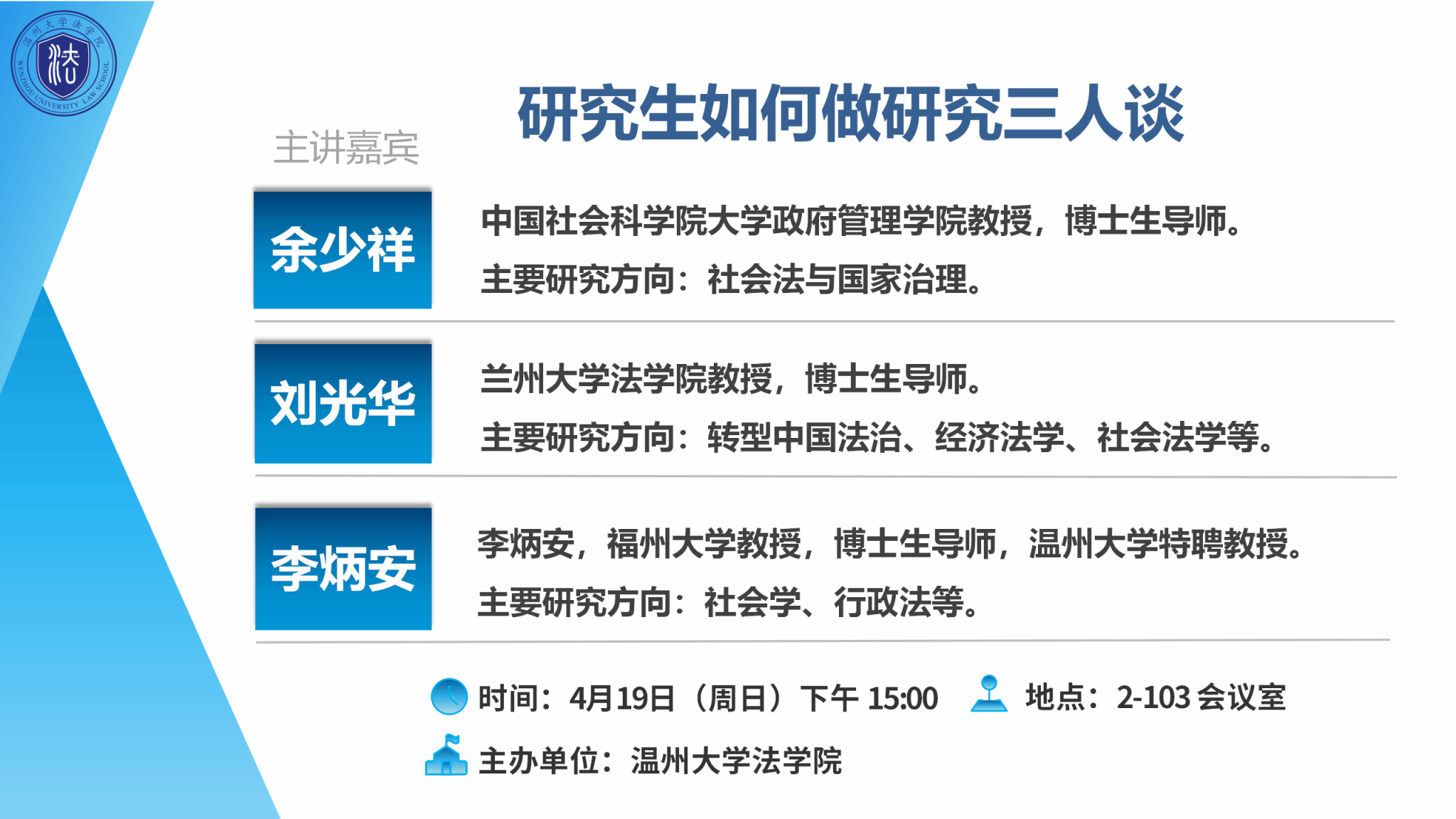 讲座预告|研究生如何做研究三人谈(3月19日下午3点)