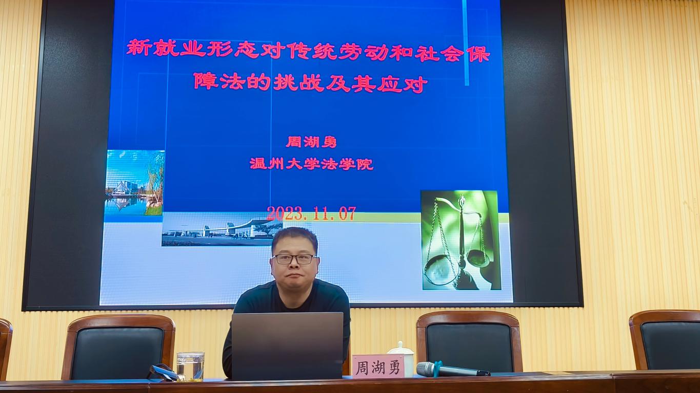 11月8日晚,suncitygroup太阳集团邀请周湖勇教授于301会议室为同学们开展题为《新就业形态对传统劳动和社会保障法的挑战及其应对》的讲座。