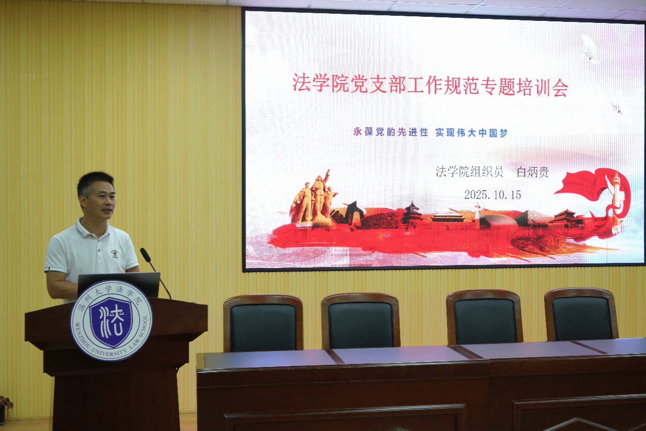 组织员白炳贵老师开展基层党务工作专题培训。他围绕“三会一课”、学生党员发展流程等内容展开详细讲解,重点讲解了培养联系人如何同入党申请人谈话以及如何撰写考察意见。为党务工作规范化提供实操指南。此外,他鼓励各学生党支部结合专业特色打造品牌,突出亮点。