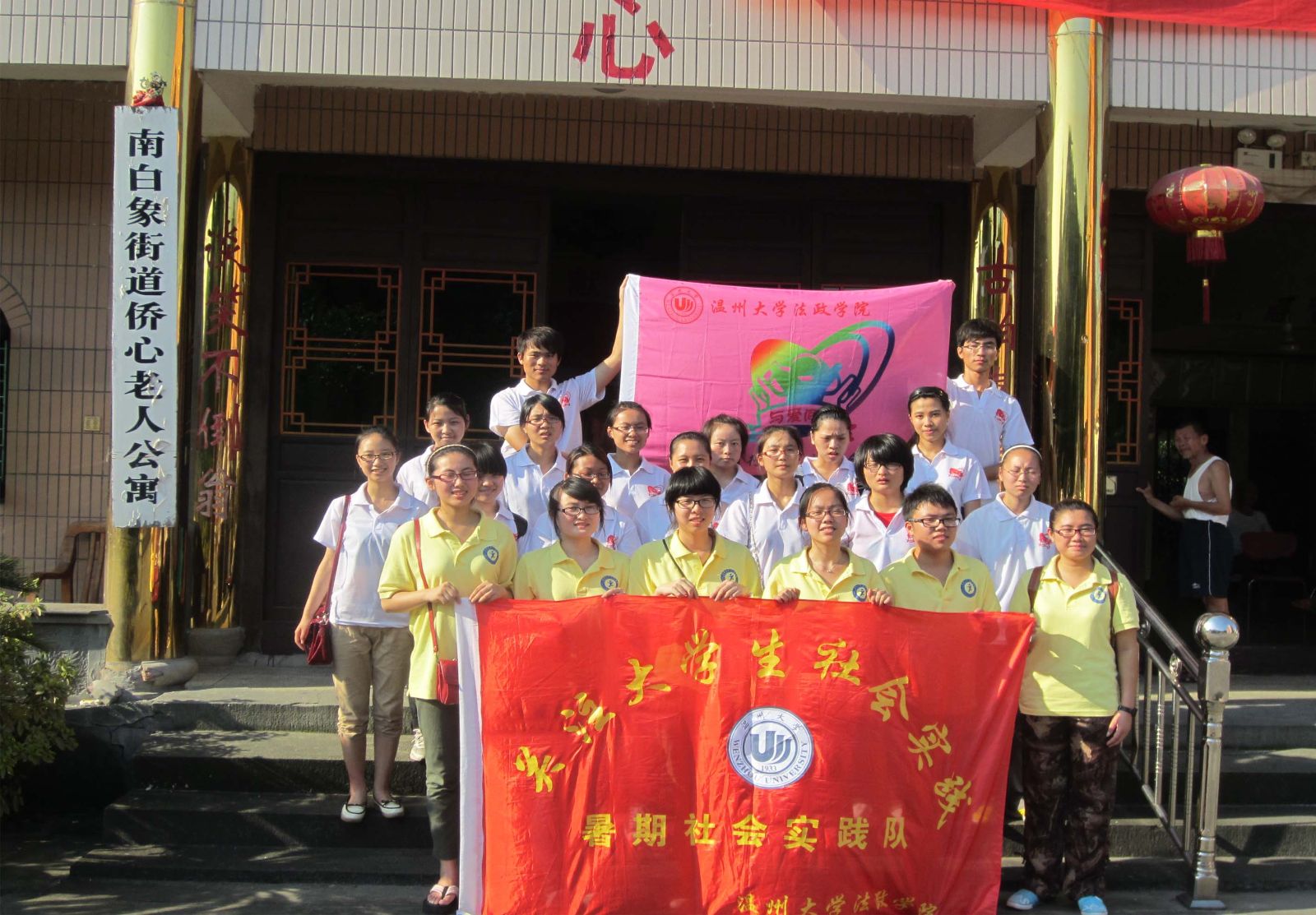 7月4日,下午两点半,太阳成集团法政学院关注大学生暑期社会实践队连同"与爱同行"实践队开始出发移步敬老院。满载浓浓爱意与关怀,去看望我们尊敬与爱护的老人,这成为流淌在我们每一个实践队员心中的期待和喜悦。