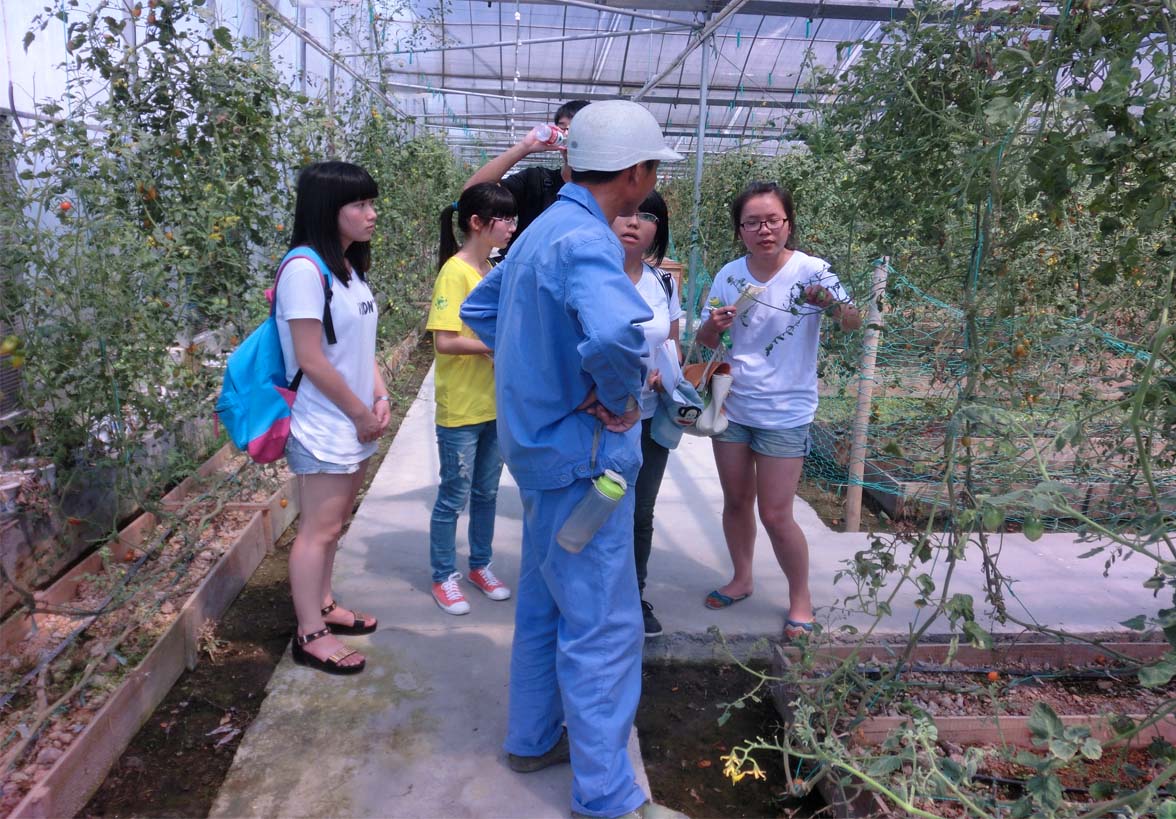2012年7月1日上午9点,碳汇林业调研队到达雅林农业科普园,并依次参观了水培园、百果园、花卉园等多处景点,并做了问卷调查,以雅林农业科普园为例,了解了人们对于绿色休闲基地的看法。在景点的观察中,调研队员们发现了园内的许多奇妙之处,如提醒游客们勿擅自采摘的标语---爱我,想我,请别摘我;以及在游客接待室中的心语愿墙、我行我秀墙等温馨的地方让游客们留下快乐的合影和美好的心愿。这些都让调研队员们对碳汇林业的可持续发展有了更多的想法。尽管今天的气温非常高,但调研队员们却依然细心的观察,认真的思索,并时不时的向工作人员提出自己的一些疑问和看法,或许,他们心中的那份热情和执着要比这天气要炙热多少倍吧!
