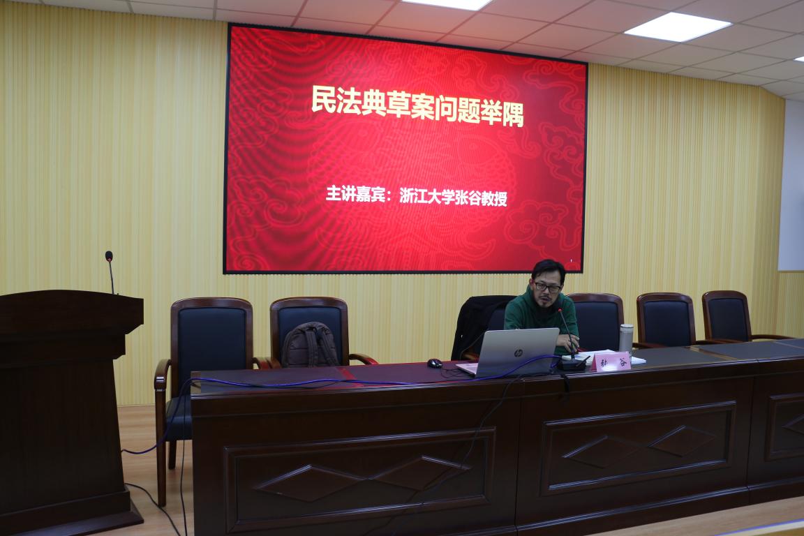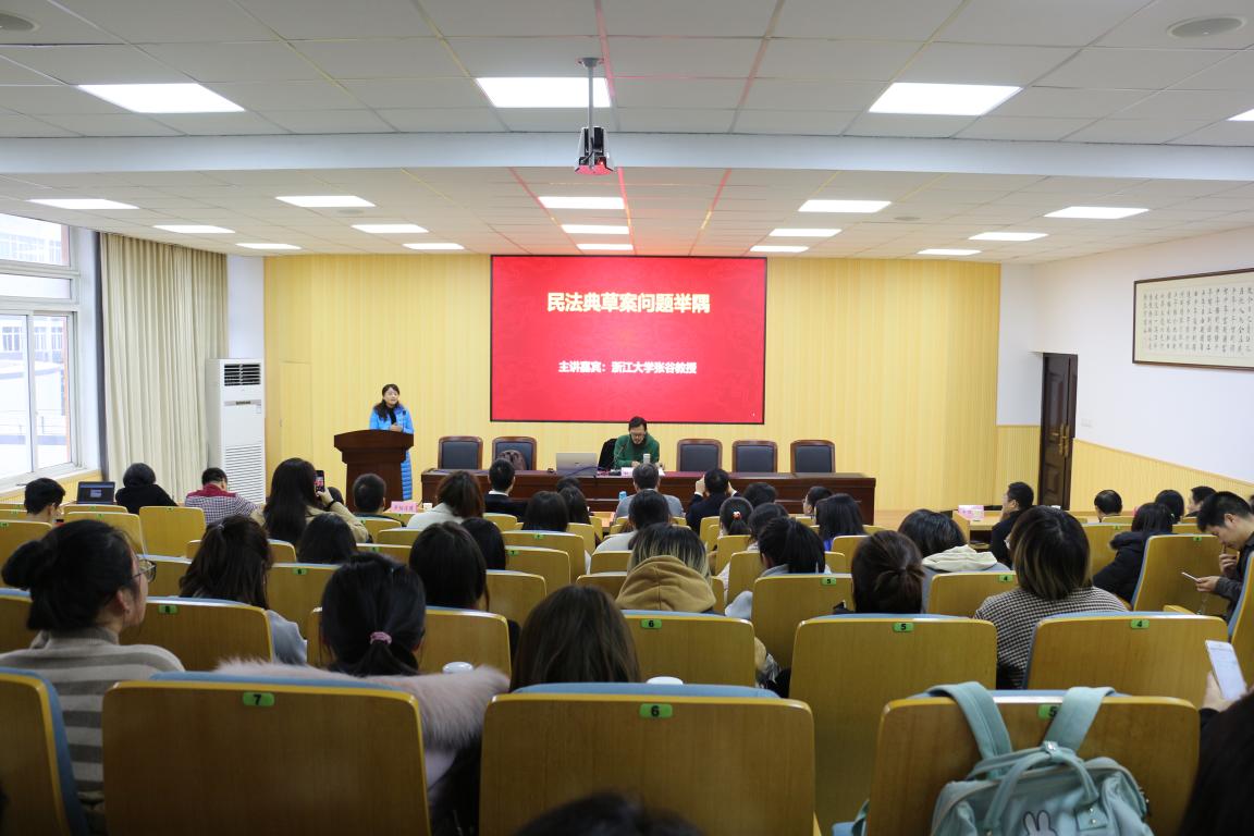 2018年12月14日下午,温州法治大讲坛专题讲座特邀浙江大学张谷教授主讲《民法典草案问题举隅》,太阳成集团法政学院法学系主任何平主持,平阳法院、市律协、学院师生逾百人参加讲座。