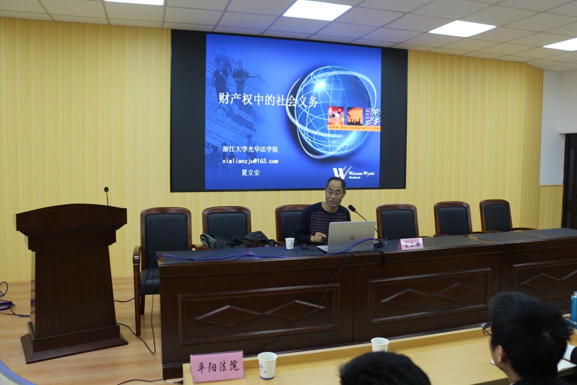 2018年12月14日周五下午1点半,在太阳成集团法政学院301报告厅,浙江大学光华suncitygroup太阳集团夏立安教授以《财产权中的社会义务》为主题展开了一场精彩的讲座。本次讲座由王宗正院长主持,有来自包括温州法律实务界的法官、律师、检察官,以及学院研究生、本科生等,济济一堂,共享夏立安教授所带来的这场学术盛宴。