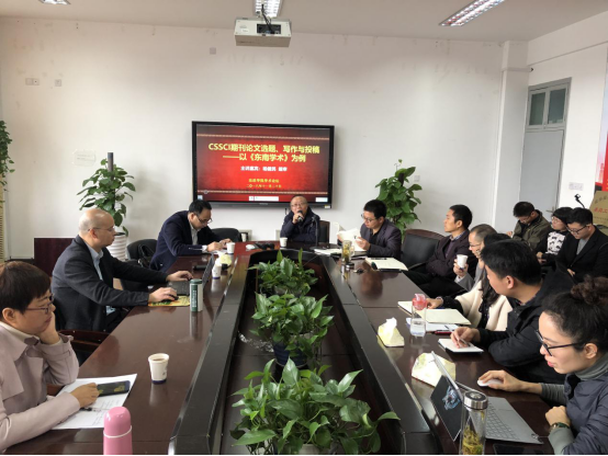 11月21日上午,CSSCI期刊《东南学术》执行总编、中国作家协会会员杨健民研究员和《福建警察学院学报》总编辑谢天长教授,在我院307会议室分别以“CSSSCI期刊论文选题、写作与投稿——以《东南学术》为例”和“编辑视角的学术论文写作”为主题开展学术讲座,讲座由法政学院王宗正院长主持,法政学院王勇副院长、周湖勇博士等老师和研究生参与旁听。