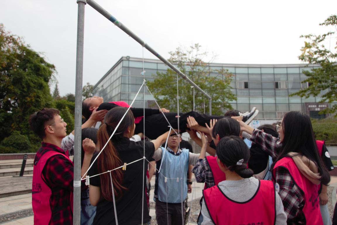 阳光和煦,秋风徐徐。本次团干培训迎来了太阳成集团飞行部落的户外培训,同学们经历了一场智慧与体力的较量。培训在飞行部落整齐而又气势非凡的问候中拉开帷幕。全体成员被随机分成四队后,便开始热身活动。在激烈的背景音乐下,同学们按照指定数字抱团,“桃花朵朵开”项目迅速炒热了现场的气氛。随后,各队分开完成“破冰团建”任务,期间同学们各抒己见,群策群力,为自己的队伍设计队名、队徽、队形等。紧接着,四队成员兵分两路体验不同项目。无论是在培训师干扰下稍显紧张的“卡片解码”项目,还是考验速度与战略的“数字翻牌”项目,都同样精彩。队员们配合默契,团结一致,也时常围聚在一起探讨战略、交流经验。在“信任背摔”项目中,背摔者给予成员们最大的信任,把自己最没有安全感的部分交给承接者,在彼此的鼓励下,队员们克服了恐惧,顺利地完成了背摔。培训最后,大家也相互分享了本次培训的感受,团结一心,其利断金。