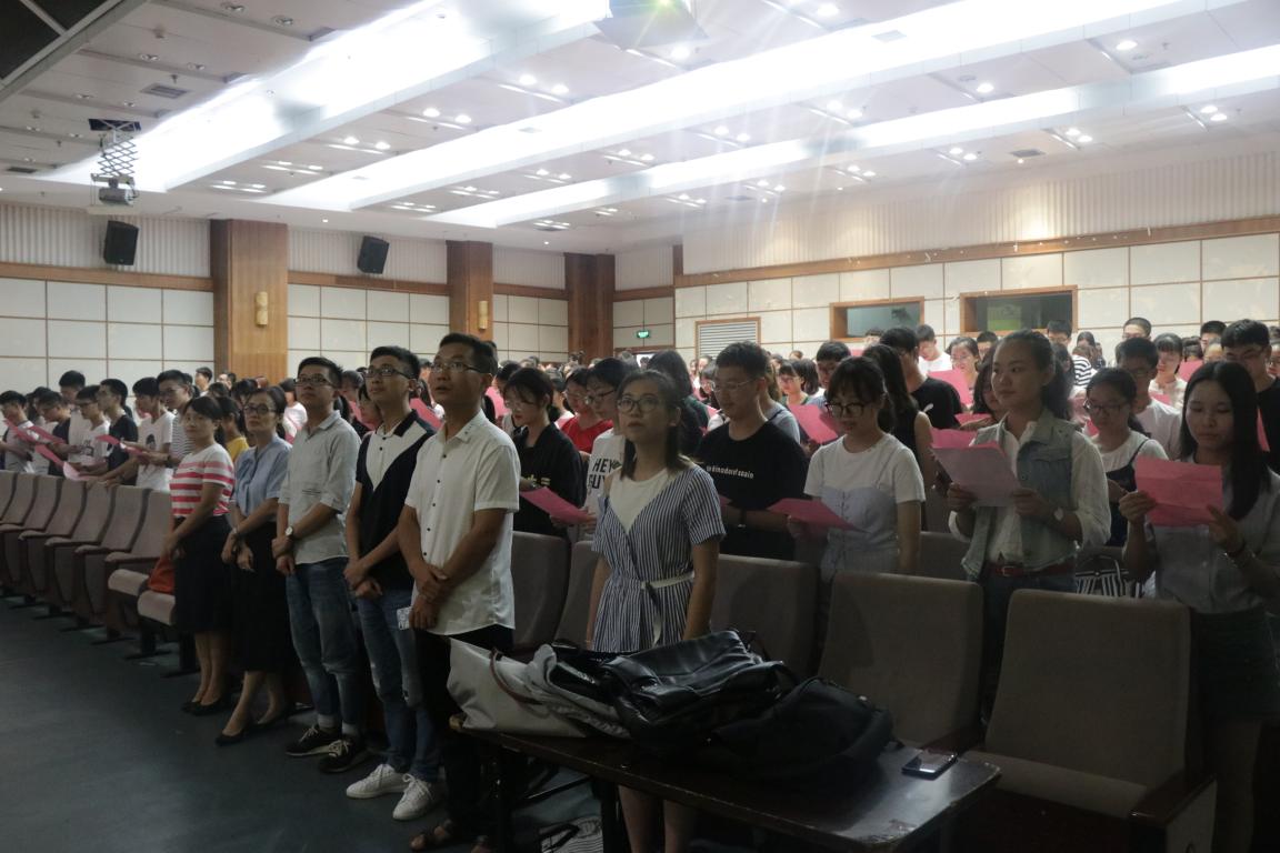 首先,王宗正院长致辞对新生来到法政学院学习表示热烈欢迎。王院长在致辞中向新生介绍了法政学院的办学历史与特色、特别强调了近几年学院在学科建设、人才培养、博硕士点培育和提升以及法政学子获得的各类学业成绩和重大奖项、毕业后的就业质量稳居全校甚至全省前列等业绩。他指出在学院的优秀师资和良好文化环境中,新生同学只要努力拼搏,一定不会后悔选择温大法政学院这个精英荟萃的"浙南法政类人才的黄埔军校和培养高地",他还对新生入校后的生活和学习适应、学业规划提出了建议。曾获得"太阳成集团最受学生爱戴老师"称号的项一丛老师代表全院老师对2018级新生的到来表示热烈欢迎,项老师围绕大学生活的新状态和新生应有的求索和担当等学业学风话题娓娓道来,她给新生提出了三点期许:一、新生应该尽快建立迎接挑战和困难的准备及信心;二、新生应该在大学习得优雅生活的能力;三、新生应把训练优秀公民的素养作为目标,项老师富有文采和哲思的发言赢得新生的阵阵掌声。老生代表、院学生会主席宋卓君同学也作了充满激情的发言,表达了作为老生对18级新生的欢迎和法政学子在成长成才方面的朋辈引领和决心。紧接着,“新生抒心声”环节由18级新生代表罗薇、杨钰莹、许桐、车昕、史东煜、鲍寒卉、黄旖宁共同带来新生代表的入学“心声”,他们逐一上台表达了结缘温大、相识法政、努力拼搏、立志成才的决心点,用铿锵的语言说出了法政学子特别是18级新生共同的希望和梦想。随后,全体18级新生全体起立,庄严进行了新生入学宣誓;"一朝法政人,一生法政人",新生入学宣誓许下的是一份承诺,扛起的是全体法政人的责任与担当。最后,法政学院学生科科长孙德升老师为大家介绍法政学院各学生组织社团的工作品牌,并与大家一同欣赏学院宣传片及品牌活动短片,使大家对法政学院有一个更为全面的了解。