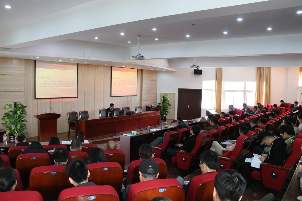 2017年11月22日下午,在人文学院报告厅举行了法政学院与体育学院全体教工和研究生学习会,邀请我校党委委员,宣传部部长潘玉驹作学习十九大报告精神的辅导讲座。