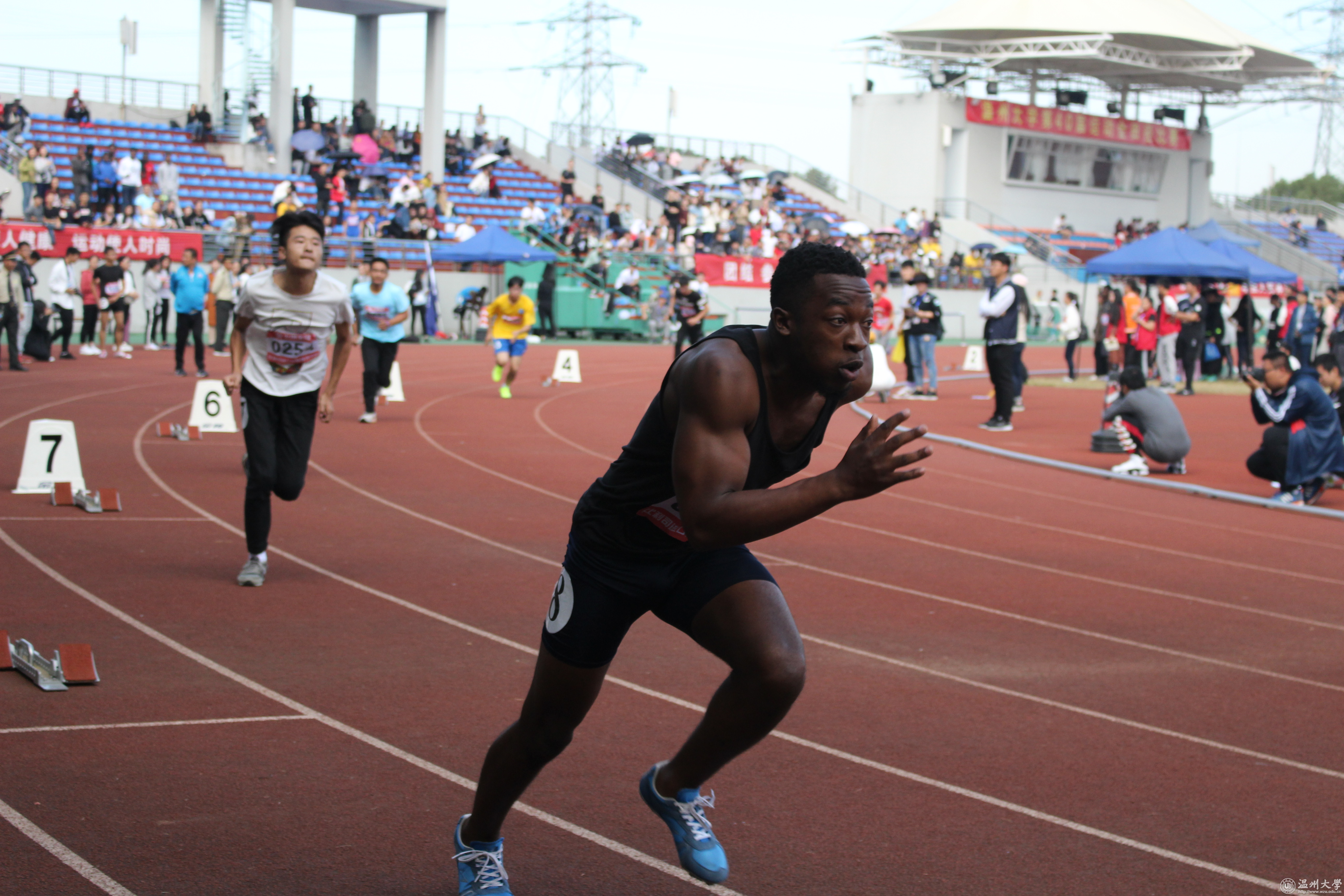 本届运动会上,法政学院可谓亮点颇多,表现不俗,不仅有国内学生在男女中长跑上频频折桂,更有国际留学生同学们的出色表现。在第一天的比赛中,法政健儿们频频出击,每一位运动健儿都拼尽全力,赛出水平,赛出风格,仅一天时间就已取得了上届运动会的法政总比分。其中在男子1500米的赛场上,季圣博在原本落后的情况下,凭借着自己强大的心理素质以及雄厚的实力,从容迎战,为法政学院拿下首金!而其在男子5000米比赛中更是展现了他的竞技实力,以拉开第二名30多秒的优异成绩再次夺冠!此外,在男子200米的跑道上,国际留学生 Clint O’Neal Vennerruru Mlilwana以风驰电掣般的惊人速度为法政学院又夺一金;倪明雪也在女子1500米的比赛中勇夺金牌,纷纷为法政学院摘金夺银,增光添彩。