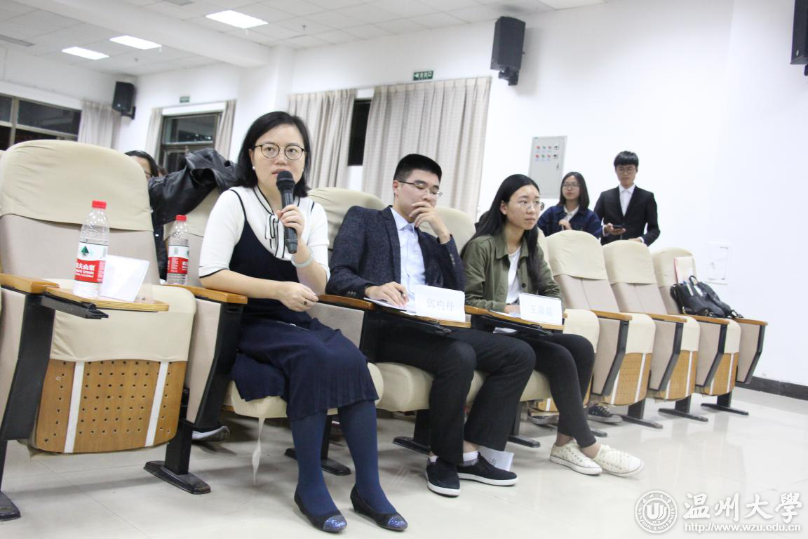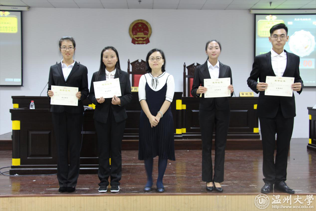 本次辩论赛分成两轮,共有四支队伍参赛。辩手们在紧张激烈的辩论之中,侃侃而谈,颇有舌战群儒之势。他们面对质疑毫不示弱,唇枪舌战之中体现了自己的辩论技巧和良好的心理素质,展现了法政学子的优良风貌。其中,第一场比赛的正方二辩马锐,无论在驳论还是自由辩论环节,她都条理清晰、语言流畅,能精确地把握发言时间,并且目光坚定地直视对方辩手,淡定自若地不像是一位大一新辩手,更像是有多次比赛经验的成熟辩手。在每场辩论会结束之时,现场提问的环节也颇为精彩,辩手们认真聆听了观众提出的问题并予以正面回答。邱杓丹老师对于辩论过程也进行了细致入微、独到精彩的点评,指出辩手们在辩论过程中存在的问题并为他们指点了辩论技巧。最终张启慧队和李宇臻队分别获得第一场和第二场辩论的胜利,李宇臻队更是获得了团体排名第一的好成绩。另外,蒋乐宁和马锐同学也获得最佳辩手的称号。邱杓丹老师为获奖的个人和团体颁奖并合影留念。