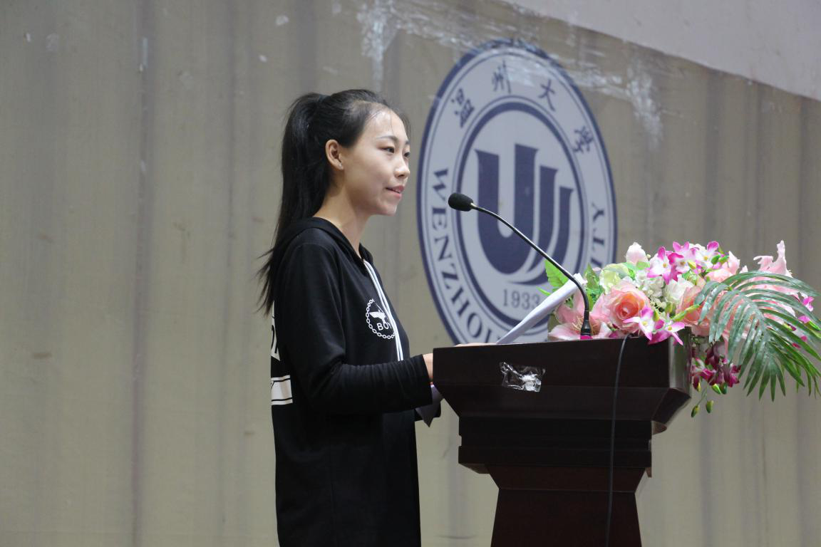 首先,王宗正院长致辞对新生来到法政学院学习表示热烈欢迎。王院长在致辞中向新生介绍了法政学院的办学历史与特色,特别提及了近几年由法政学子获得的各类学业成绩和重大奖项以及毕业后的就业质量稳居全校甚至全省前列,学院办学与地方立法和法律实践工作相结合等方面。他指出在学院的优秀师资和良好文化环境中,新生同学只要努力拼搏,一定不会后悔选择温大法政学院这个精英荟萃的"浙南黄埔军校和人才培养高地",他还对新生入校后的生活和学习适应、学业规划提出了建议。曾获得"太阳成集团最受学生爱戴老师"称号的项一丛老师代表全院老师对2017级新生的到来表示热烈欢迎,项老师围绕大学生的自由与担当等学业学风话题娓娓道来,富有文采和哲思的发言赢得新生的阵阵掌声。老生代表、院学生会主席梅铁楠同学和新生代表孙丽娜同学也作了充满激情的发言,分别表达了作为法政学子在成长成才方面的决心和信心。紧接着,新"声"唱响环节由17级新生代表李淇、朱纯慧、梁绍麟、叶蓉菲、郑暄萱共同带来歌曲联唱,新生们精彩的表演瞬间点燃了会场的气氛,他们用歌声唱出了法政学子特别是17级新生共同的希望和梦想。随后,全体17级新生全体起立,庄严进行了新生入学宣誓;"一朝法政人,一生法政人",今天的入学宣誓许下的是一份承诺,扛起的是全体法政人的责任与担当。最后,法政学院学生科科长孙德升老师为大家介绍法政学院各学生组织社团的工作品牌,并与大家一同欣赏学院宣传片及品牌活动短片,使大家对法政学院有一个更为全面的了解。