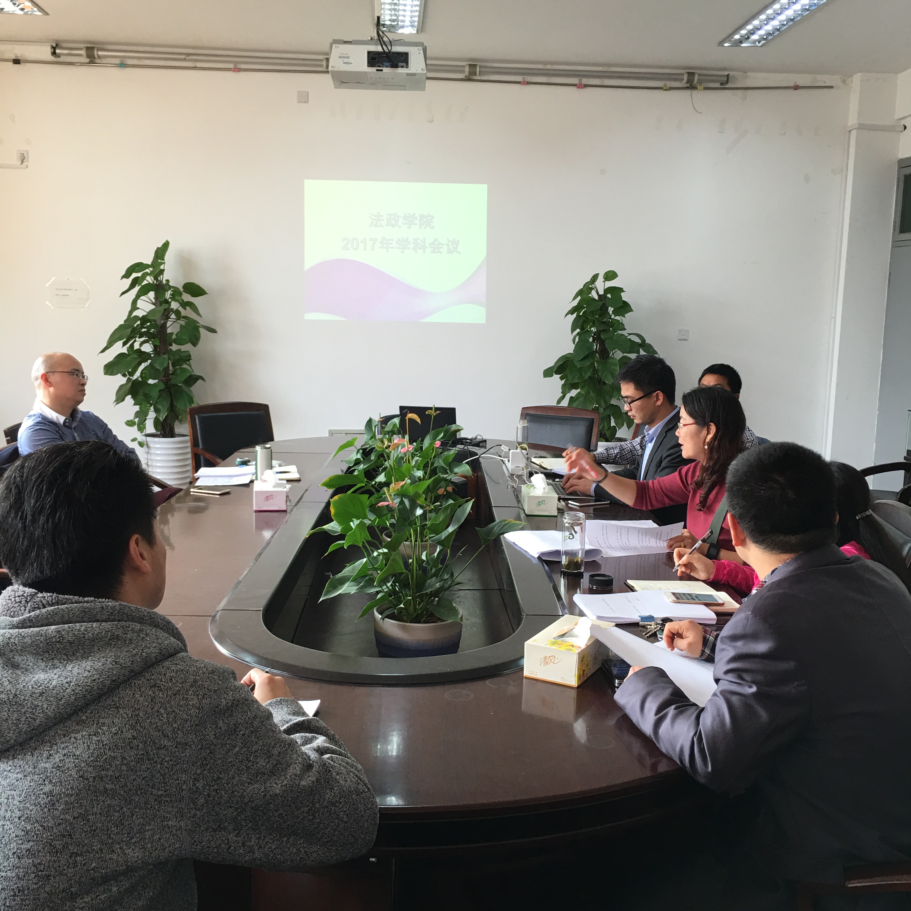 2017年1月7日,太阳成集团法政学院在北校区2号楼307会议室举行了新一年度的学科建设会议暨法律硕士申报讨论会,出席此次会议的有法政学院院长王宗正、副院长王勇,法政学院缪心毫老师、周湖勇老师、宾雪花老师、何平老师,王宗正院长主持此次会议。