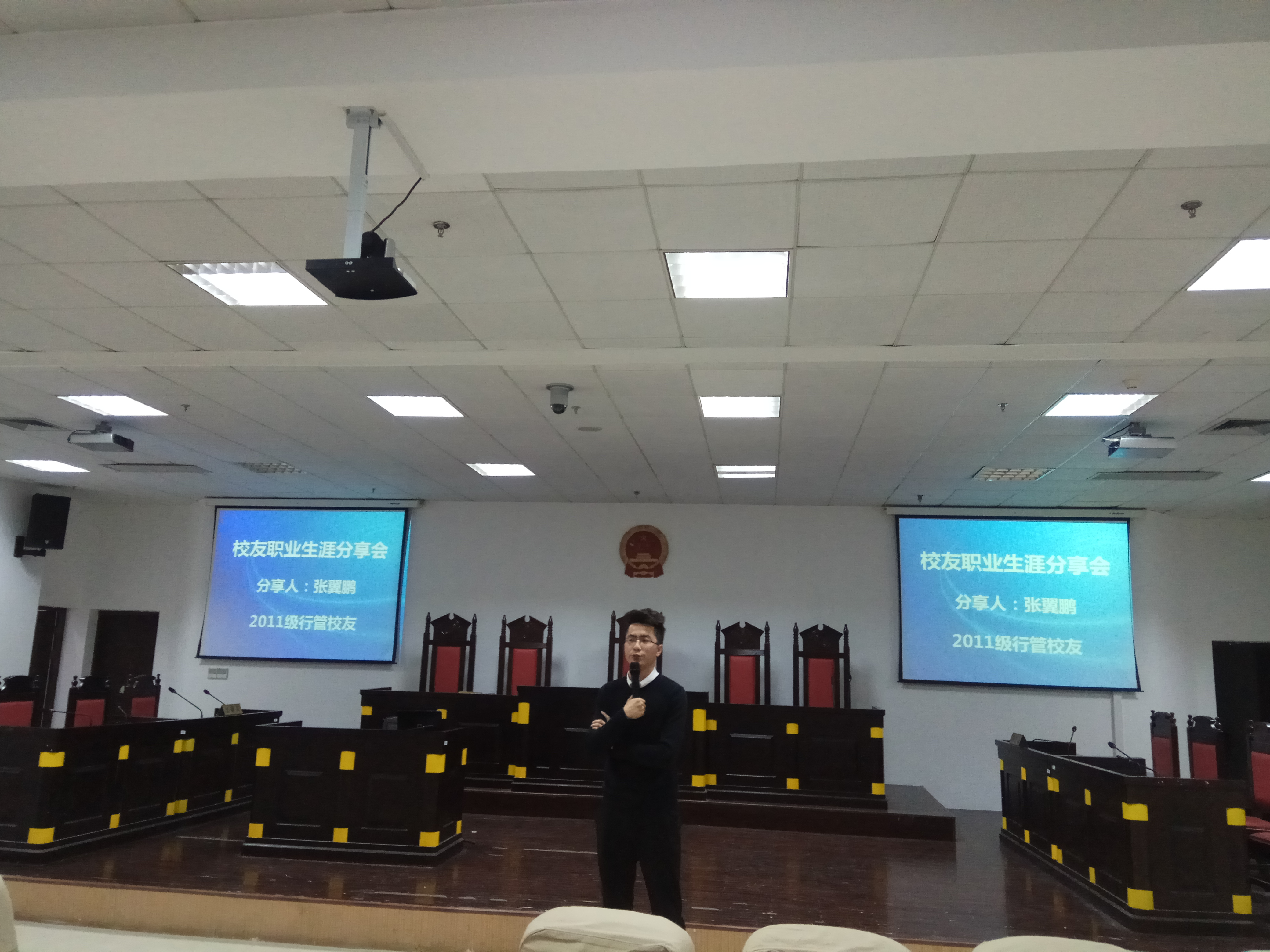 为了加强在校学生与院友的联系交流,帮助在校学生结合院友的工作和发展情况做好学业规划和职业规划,2016年12月19日晚,法政学院举办优秀院友职场经验报告会。学院党总支副书记严玲红、学生科副科长孙德升和白昌科老师以及16级全体新生参加了报告会。