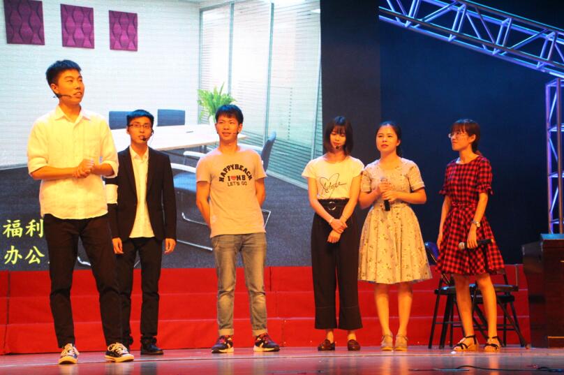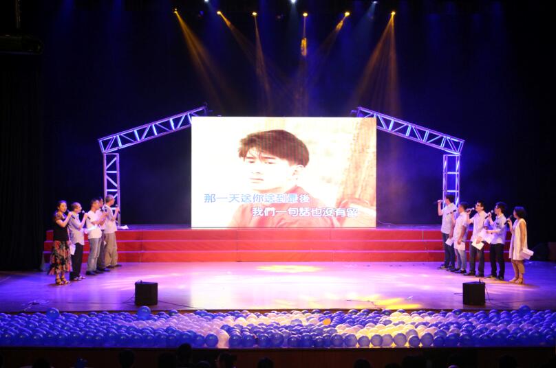 毕业生晚会上自然少不了老师们的节目,老师们先是高歌一曲《最炫民族风》点燃现场的气氛,再是用朗诵表达对毕业生的希冀和祝愿。毕业生们纷纷上台为老师献花和表达最真挚的感谢。而14法二和15行管共同演绎的《小幸运》更是道出了此刻所有人的心声,是啊,与你相遇好幸运,是啊,原来你是我最想留住的幸运。