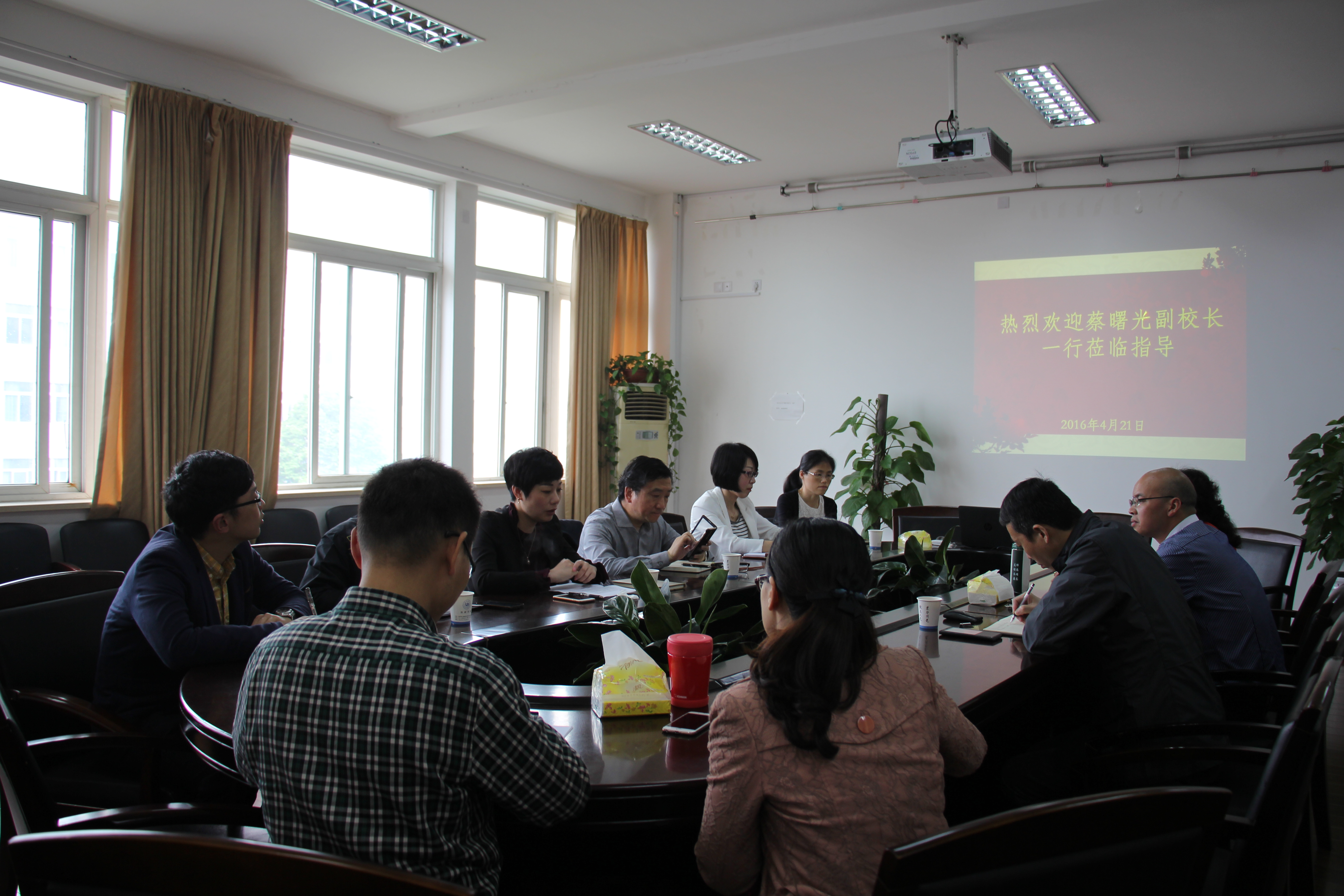 2016年4月21日下午,由蔡曙光副校长带队,计财处张若妤处长、阮丽芬副处长、任瑞璋副处长等一行六人到法政学院对计财处相关工作进行调研。