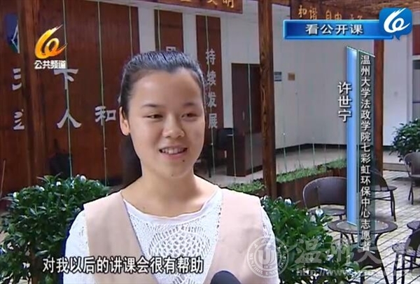 据了解,法政学院七彩虹环境法治联盟的志愿者于2015年1月注册成立了民办非企业单位(环保NGO),注册名称为"温州市七彩虹环保公益服务中心"。他们策划的"公众环保生活方式倡导及环境法制宣传活动"正在进行环保讲师团志愿者培训,该活动在温州市环保局举办的"温州市创建国家环保模范城市公益创投活动"中获得资助。这50多位志愿者在接下来三个月会在温州市的50-100所中小学和部分社区开展环保宣传教育,系统而全面的传授环保知识,并倡导和实践环保的生活方式,为创建环保模范城市贡献力量。