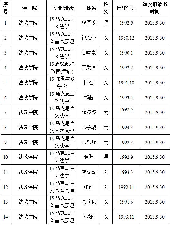 2015/2016学年第一学期研究生 入党积极分子名单公示