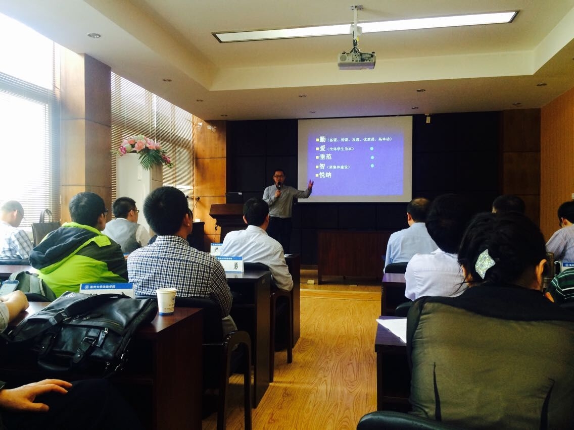 2015年4月1日下午,法政学院在法政楼一楼报告厅举行"如何当一名好教师"大讨论活动启动仪式,学院全体教师和部分学生代表出席了启动仪式,并特邀"全国模范教师"郑小侠校友到场作主题报告。