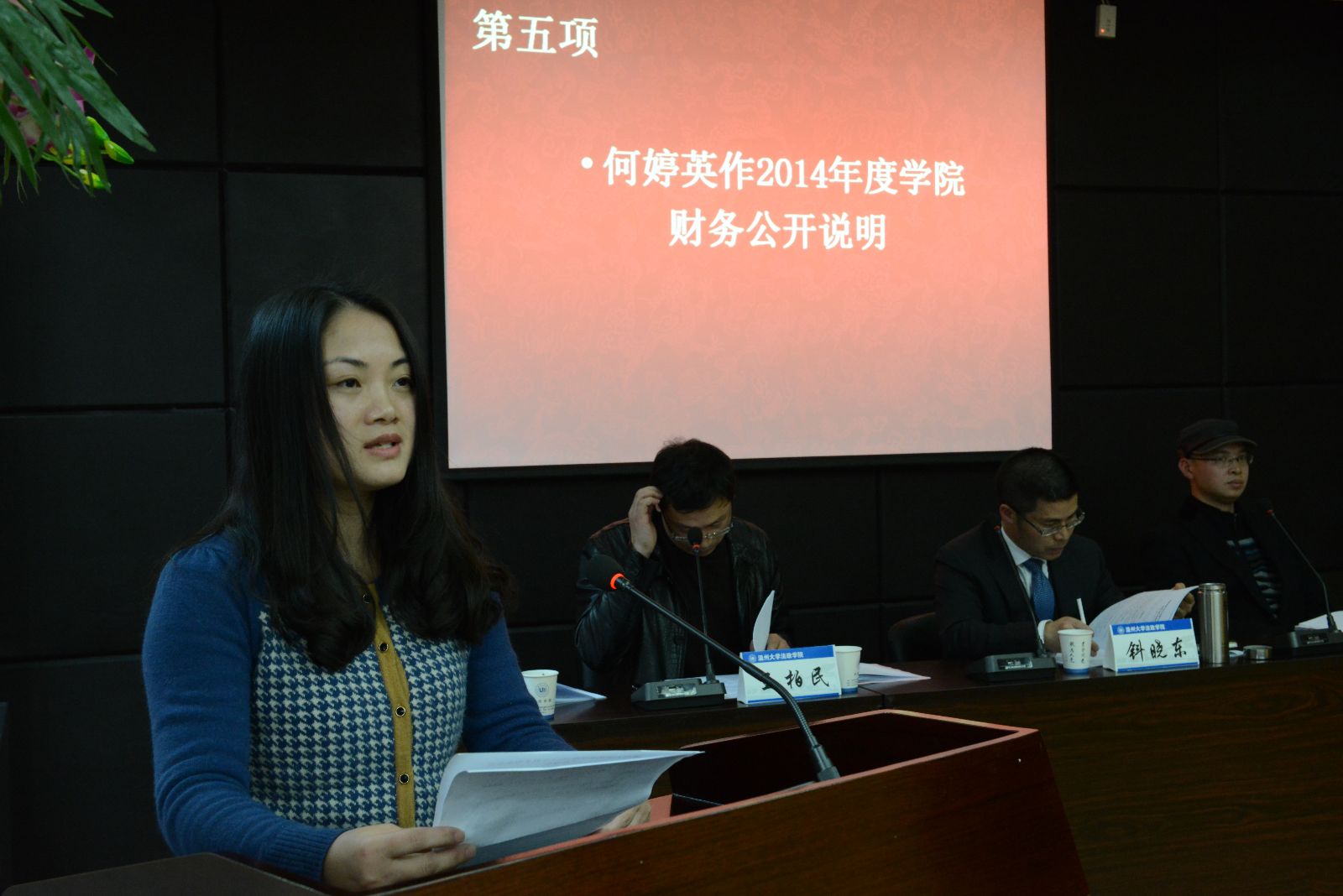 办公室主任何婷英作《2014年度学院财务公开工作报告》。