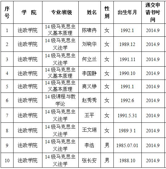 2014/2015学年第二学期研究生 入党积极分子名单公示