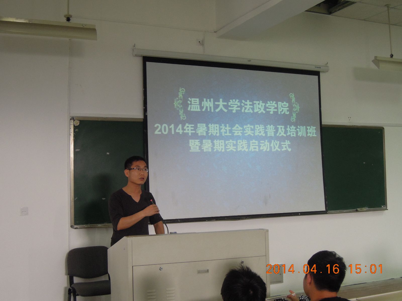 2014年4月16日星期三下午1:30,2014年法政学院暑期社会实践普及培训班暨暑期社会实践经验交流会在法政楼203教室举行。学生科孙德升、白昌科老师,2013年优秀社会实践队伍负责人以及13级全体学生参加会议。