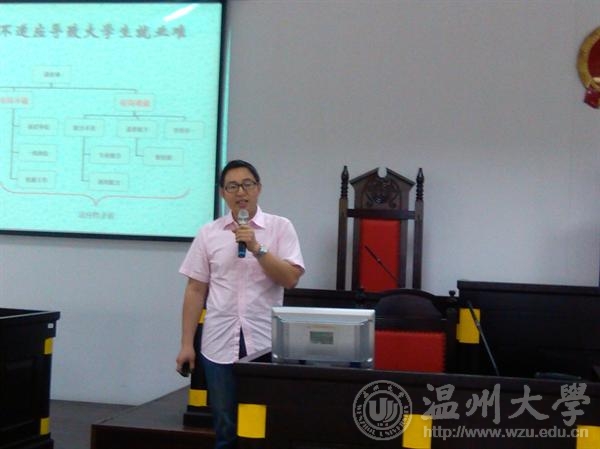 首先,校就业处高富春老师作了高校毕业生求职就业专题辅导讲座,他通报了国家和浙江省及温州市最新的就业政策及信息,并专门针对法政学院近年毕业生就业情况进行了系统的分析,从当前就业形势、大学生的就业观念和职业能力、毕业和就业须知等几个方面做了深刻而详细的讲解,对毕业生如何培养科学的就业求职思维模式,作出合理的职业生涯定位提出了宝贵的建议。讲座后高老师还逐一回答了现场法政毕业生的一些政策和各类就业手续方面的问题,给同学们进行了认真指导。