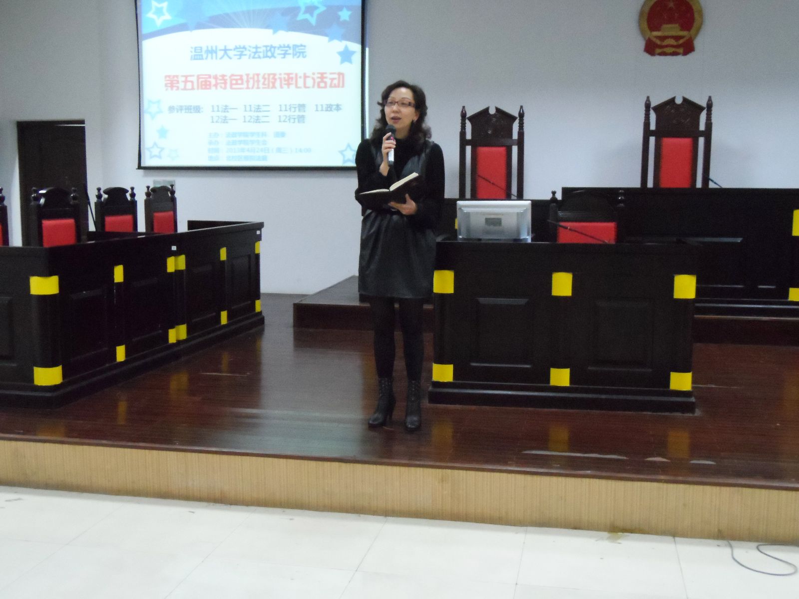 2013年4月24日下午,法政学院举办第五届"特色班级"评选活动。学院党总支副书记严玲红、学生科副科长孙德升、辅导员白昌科、学院主席团成员和各班15名学生代表参加活动并担任评委。学习部王苏华主持了本次活动。