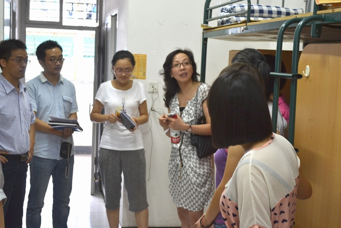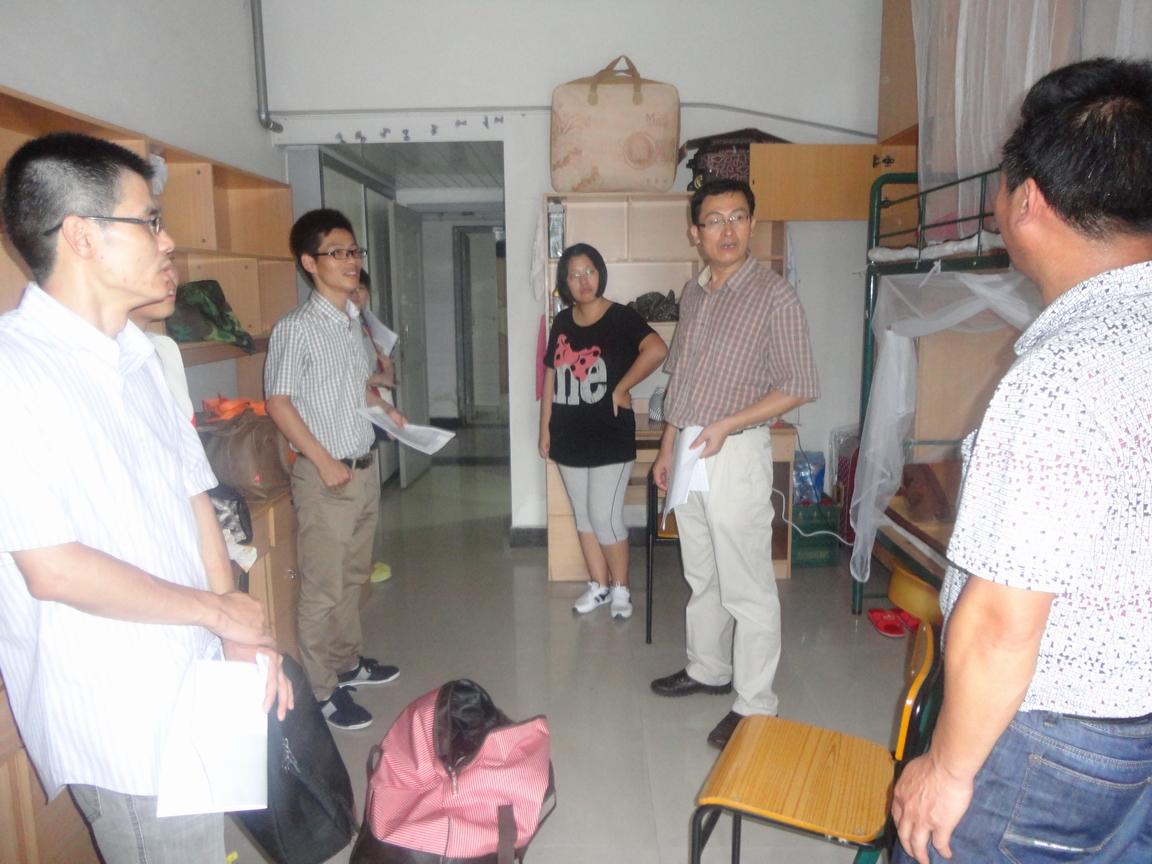 2012年9月9日,法政学院新生正式报到,下午报到工作基本结束,新生们都住进了温暖舒适的新家。我院迎来了充满激情怀揣梦想的205位2012级新生。为及时了解2012级新生到校后的生活面貌,为加强与新生们的沟通交流,下午3点30分,法政学院院长钭晓东、党总支书记王柏民、党总支副书记严玲红、副院长王宗正分组带领各系主任、新生班主任、院办公室、教学科、学生科辅导员老师及新生班主任助理等分组逐一走访了全院新生寝室,了解新生报到注册和入住公寓情况。