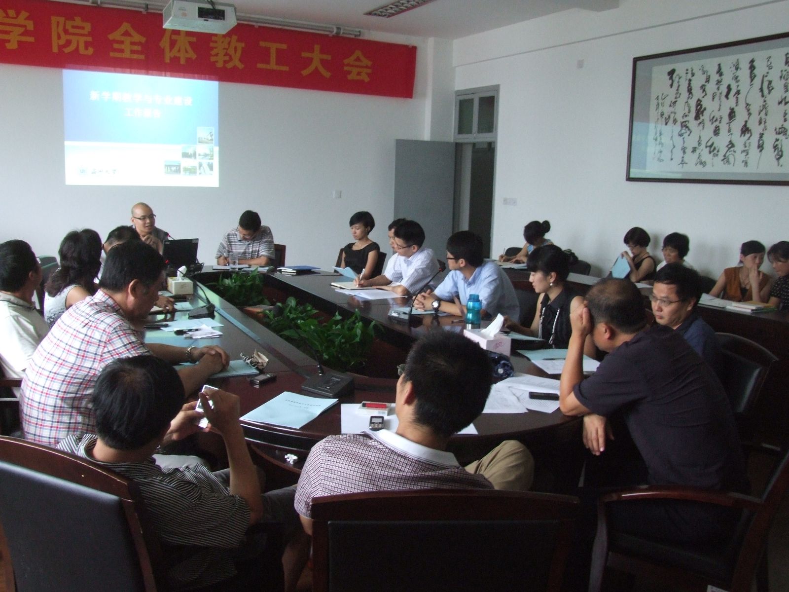 9月5日下午,学院在307会议室召开新学期全体教工大会。学院领导班子成员和全体教职工参加了会议。会议由学院党总支书记王柏民主持。