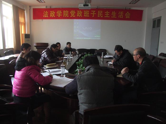 12月26日,法政学院召开党政领导班子民主生活会,学院党政班子成员及总支委员参加会议,党总支书记蔡克骄主持会议。