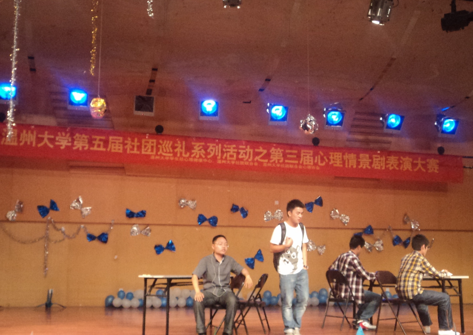 在学院领导的重视和支持下,我院学生会心理部组织排练近一月、由顾佳妹、华天宇、陈才渊、吴颖、吴培、季耀、吴菲檑、俞佳敏、姜坤、彭浩棋、鲍欣媛等同学参演的心理情景剧《年轻的代价》正式登台亮相,演员们自信大方地走上舞台,神情专注地投入表演。他们凭着情真意切的表演,时而诙谐幽默,时而发人深省,引起了在场师生的共鸣和思考,为观众们上演了一场心灵视听盛宴。最终,我院参赛剧目取得了总分和音乐学院并列第三名的好成绩并荣获"最佳创意奖"。