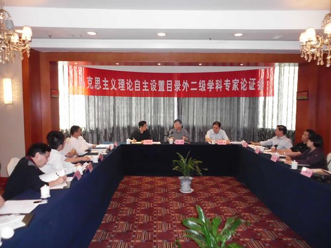 ,我院组织召开了马克思主义理论一级学科下自主设置目录外二级学科专家论证会,浙江大学博士生导师万斌教授为专家论证会组长,福建师范大学博士生导师郑又贤教授、复旦大学博士生导师郭苏建教授、福州大学博士生导师陈泉生教授、浙江大学博士生导师朱新力教授、郁建兴教授、段治文教授为成员的专家组对在马克思主义理论一级学科下自主设置"马克思主义法学"这一目录外二级学科进行了权威论证。我校党委委员、研究生工作部部长陈安金教授、马克思主义学院院长任映红教授等列席了会议。