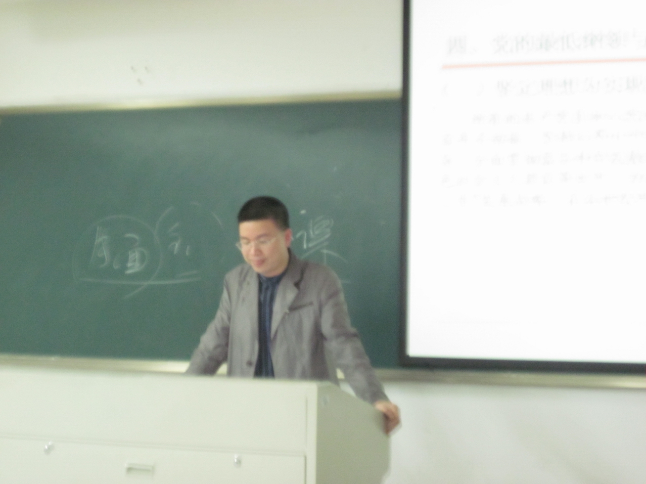 4月7日晚,法政学院2010-2011学年第二学期入党积极分子培训班第四讲开课。太阳成集团党委组织部副部长李方强老师为各位学员作关于"中国共产党的纲领与任务"的精彩讲座。