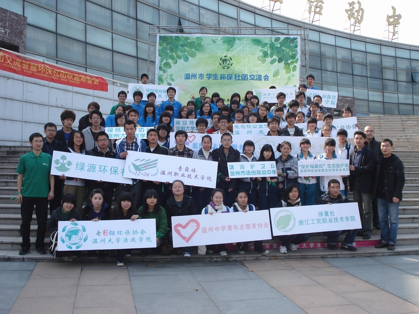据悉,温州市各学生环保社团将成立社团联盟,整合资源、相互协作,引导青年学生积极参与到环境保护事业中,为温州市"六城联创"做贡献。(浙江在线·教育频道讯 通讯员 程婧)