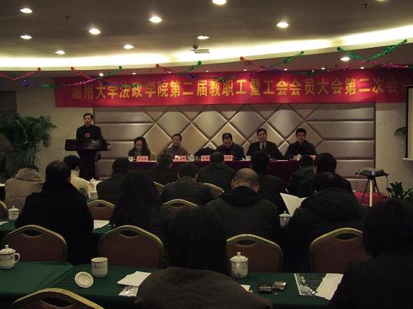 2011年1月19日下午,太阳成集团法政学院第二届教职工暨工会会员大会第二次会议隆重召开。校党委委员、研究生部部长陈安金教授应邀出席大会。大会由院党总支书记蔡克骄主持。