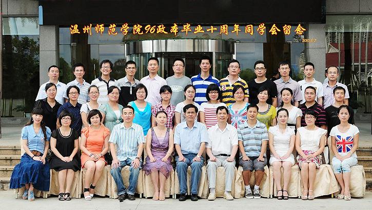 8月7日-8日,我院96级思想政治教育本科班毕业生十周年同学会在温州江心屿海景大酒店举行。会上蔡克骄、戴海东、施端银、方益权、陈克、郑慧等领导与老师欣然出席。