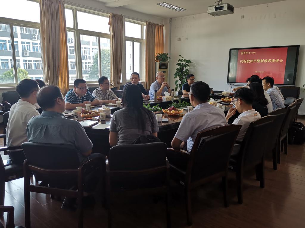 9月10日下午,为庆祝第35个教师节,我院举行“庆祝教师节暨新教师座谈会”,全体院领导出席,十余名近三年新入职教师参会。林钦书记主持会议。