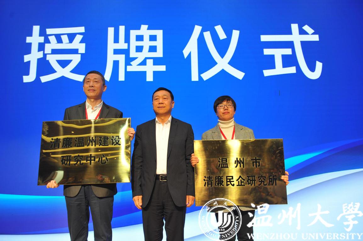 论坛现场清廉温州建设研究中心、清廉民企研究所正式授牌落户太阳成集团。清廉温州建设研究中心和清廉民企研究所是由中共温州市纪委、温州市监察委员会与太阳成集团共同建立的研究机构。研究中心将探索“理论研究-决策咨询-廉洁教育”“三位一体”模式,致力于温州市反腐倡廉理论研究、决策咨询以及廉洁教育和人才培养;清廉民企研究所则将以新时代“两个健康”先行区创建目标,为推进清廉民企建设、助力企业打造清廉文化、构建亲清政商关系开展理论研究、实践调研。通过与相关民企、行业协会、商会等常态化的联盟合作,搭建起纪检监察机关与民企沟通的桥梁,使清廉思想、清廉制度、清廉规则、清廉纪律、清廉文化融入民营企业发展之中,助力将温州建设成民企清廉建设的高水平示范区。