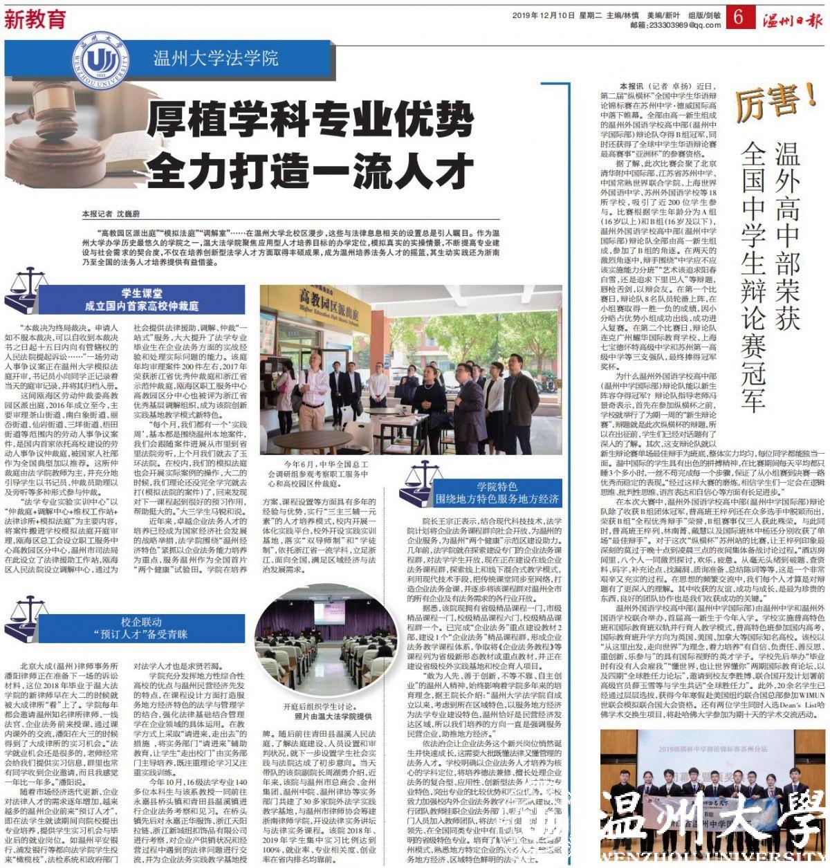 “敢为人先、善于创新,不等不靠、自主创业”的温州人精神,始终影响着学院多年来的培育理念,据王院长介绍:“suncitygroup太阳集团自成立以来,考虑到所在区域特色,以服务地方经济为法学专业建设特色,温州恰好是民营经济发达区域,所以我们培养的方向一直是强调服务民营企业,助推地方经济。”
