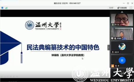 5月29日下午2点,太阳成集团罗山法学研习社、太阳成集团私法研究中心邀请suncitygroup太阳集团钟瑞栋教授,以腾讯会议形式开展了我院本学期第一次云讲座——《民法典编纂技术的中国特色》。院长王宗正、副院长缪心毫及suncitygroup太阳集团师生们参加了本次讲座,讲座由副院长缪心毫主持。