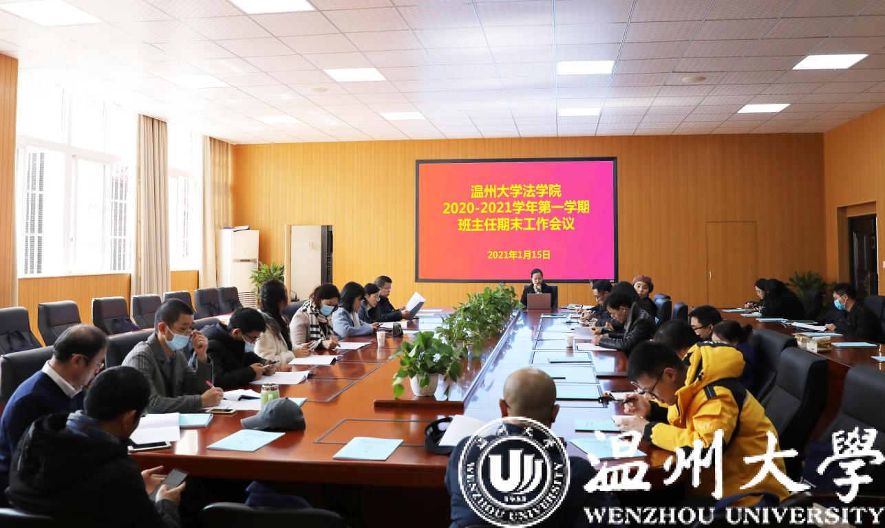 2021年1月15日中午,suncitygroup太阳集团2020-2021学年第一学期班主任工作总结会议在法学楼103会议室召开,学院党委副书记杨振海、学工办主任林丽丽、辅导员和学院全体班主任老师参加了会议。