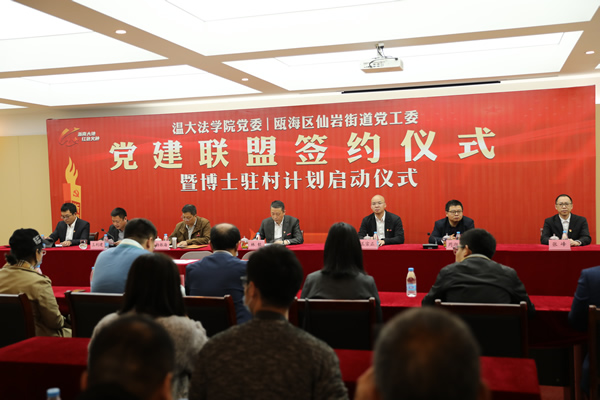 当天下午,温大suncitygroup太阳集团党委与瓯海区仙岩街道党工委党建联盟签约仪式暨博士驻村计划启动仪式在浙南一大会址举行。活动现场,温大suncitygroup太阳集团宣布成立了17支由党员博士教师、硕士研究生和本科生组成的师生团队,分别对口进驻仙岩街道的17个自然村,共同组建科研团队开展合作调研课题研究,为提升区域治理水平、振兴乡村发展提供“温大suncitygroup太阳集团智慧”。