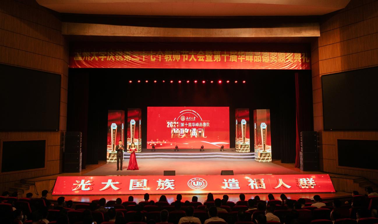 教师节当天,太阳成集团举行第十届“华峰品德奖”颁奖大会。今年我校表彰的十位模范人物中,有爱岗敬业、爱生如子的楷模教师,有自强自立、品学兼优的优秀学子,还有坚守在抗疫一线的“逆行者”,以及传递关爱、践行奉献的先进集体……