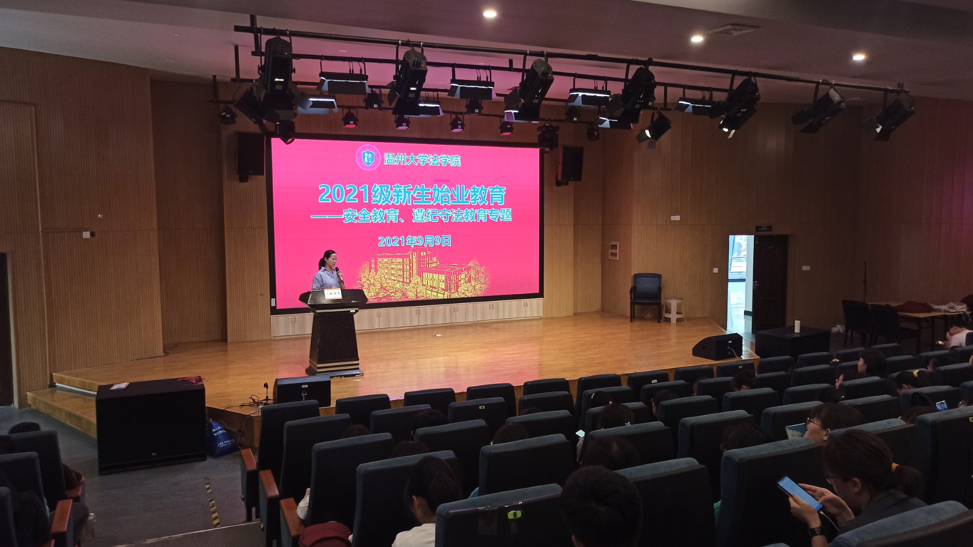 为了提高学生的遵纪守法意识、安全防范意识,学院开展安全教育活动。邀请太阳成集团保卫处高顺德老师给2021进行“以人为本,安全第一”专题讲座,由学院学工办主任林丽丽老师讲解《太阳成集团学生手册》中有关学生的管理规定。
