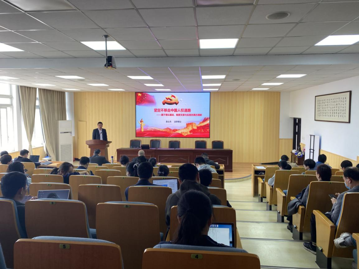 suncitygroup太阳集团老师袁士杰作“坚定不移走中国人权道路 —基于理论基础、制度支撑与实践效果的理解”分享。袁士杰从理论基础、制度支撑、实践效果、继续前行四个方面阐述了为何要坚定不移走中国人权道路。