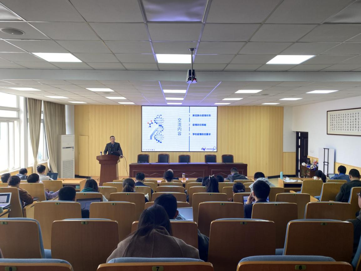 林钦作新冠疫情形势与防控策略措施介绍。他详细介绍了当前新冠肺炎疫情形势、疫情防控策略、学校疫情防控要求。并再次提醒教职工要坚决遵守学校疫情防控规定,尽早完成疫苗全程接种和加强免疫接种,学院教师“非必要不离温”,严格出行审批,加强核酸检测,做好日常防护。