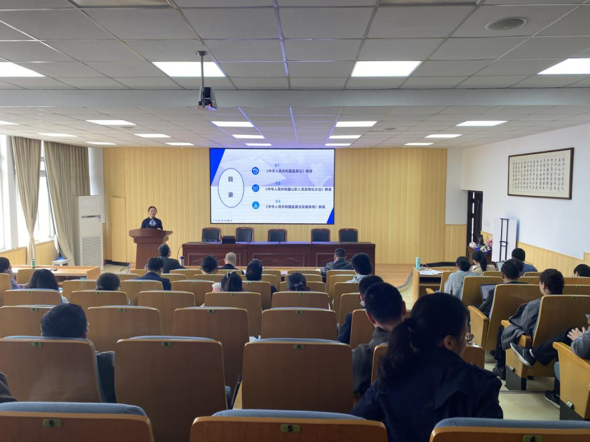 suncitygroup太阳集团老师谢丽珍对“两法一条例”(《中华人民共和国监察法》《中华人民共和国公职人员政务处分法》《中华人民共和国监察法实施条例》)重点内容进行了解读。并提醒各位老师要进一步提高党员干部的纪律观念和法纪意识,形成守纪律、讲规矩、勇担当的政治品格。