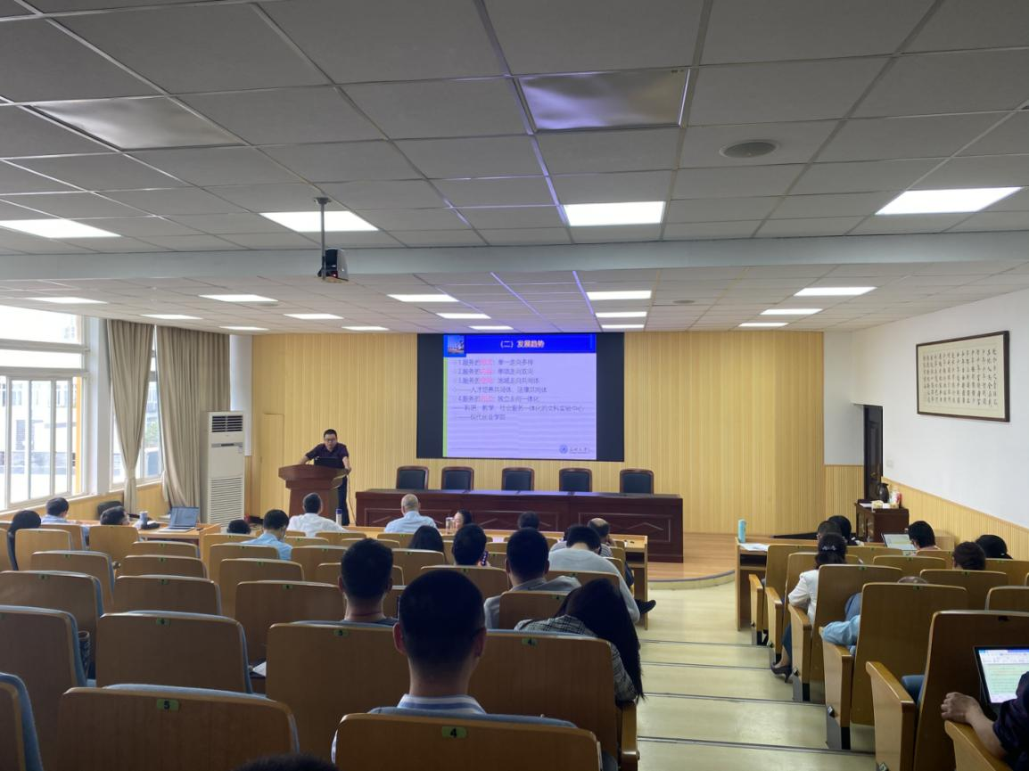 suncitygroup太阳集团副院长周湖勇分享了关于社会服务的几点思考。周湖勇从社会服务在高校职能中的地位、发展趋势;社会服务是学校四大举措之一;进一步发挥学院在社会服务的特色和优势三个方面向老师们介绍了如何进一步做好社会服务工作。