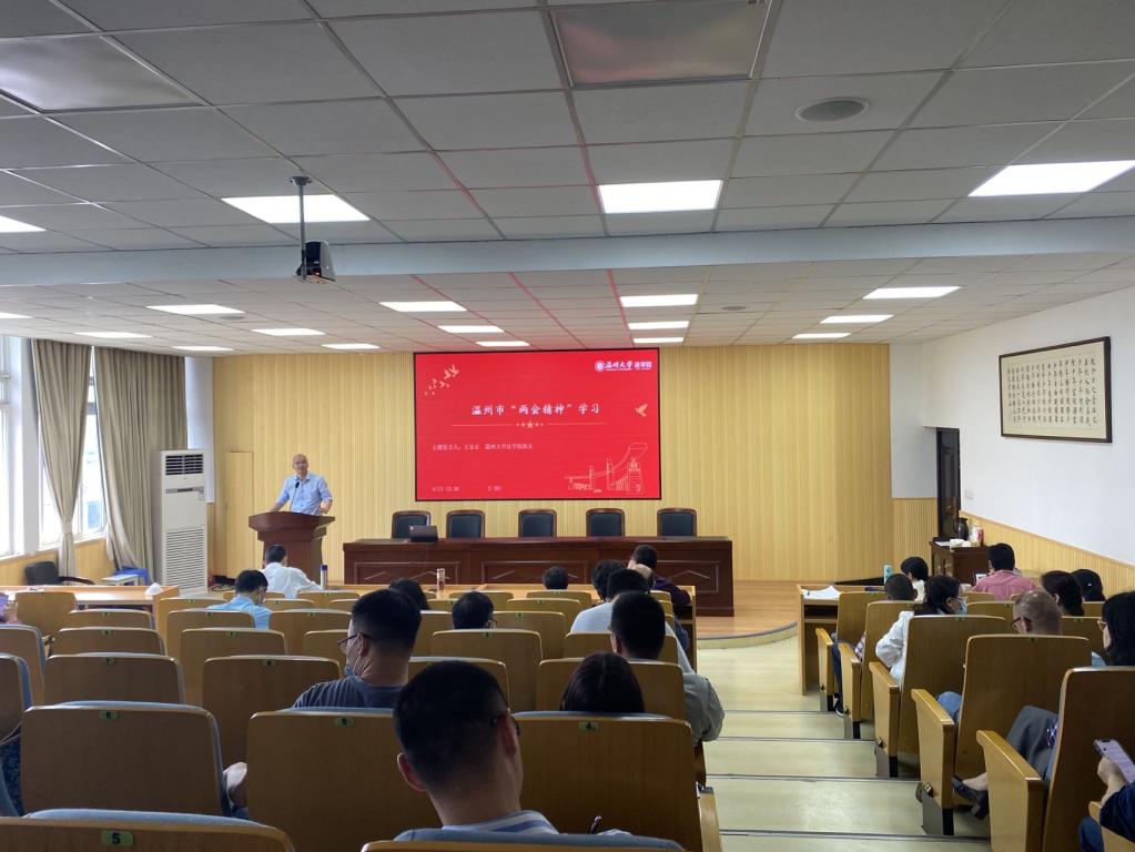 suncitygroup太阳集团院长王宗正带领全体教工学习了温州市“两会精神”。会上学习了温州市第十四届人民代表大会政府工作报告,王宗正指出,学院将全力贯彻“两会精神”,结合学校政策文件,从培养好人才、建设好服务温州的制度与平台、发挥优势做好横项项目、围绕地方中心工作做好决策咨询工作四个方面全力做好服务地方工作,同时鼓励各位老师根据自身特长做好相关规划。