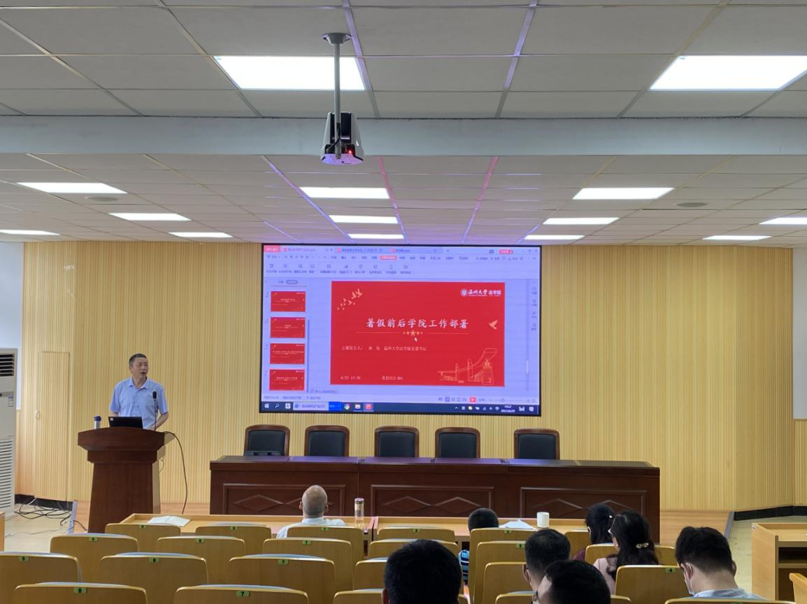 林钦对暑假前后学院工作进行了部署。提醒教师做好暑假前后疫情防控、毕业典礼、期末考试等工作,注重安全隐患排查和消防、交通等安全。